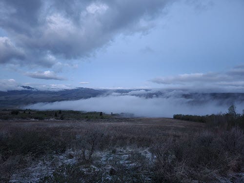I was out for a run the other day with the pups. Sunrise was peeking over the mountains. When I looked out over the view below me, I saw clouds down in the valley.